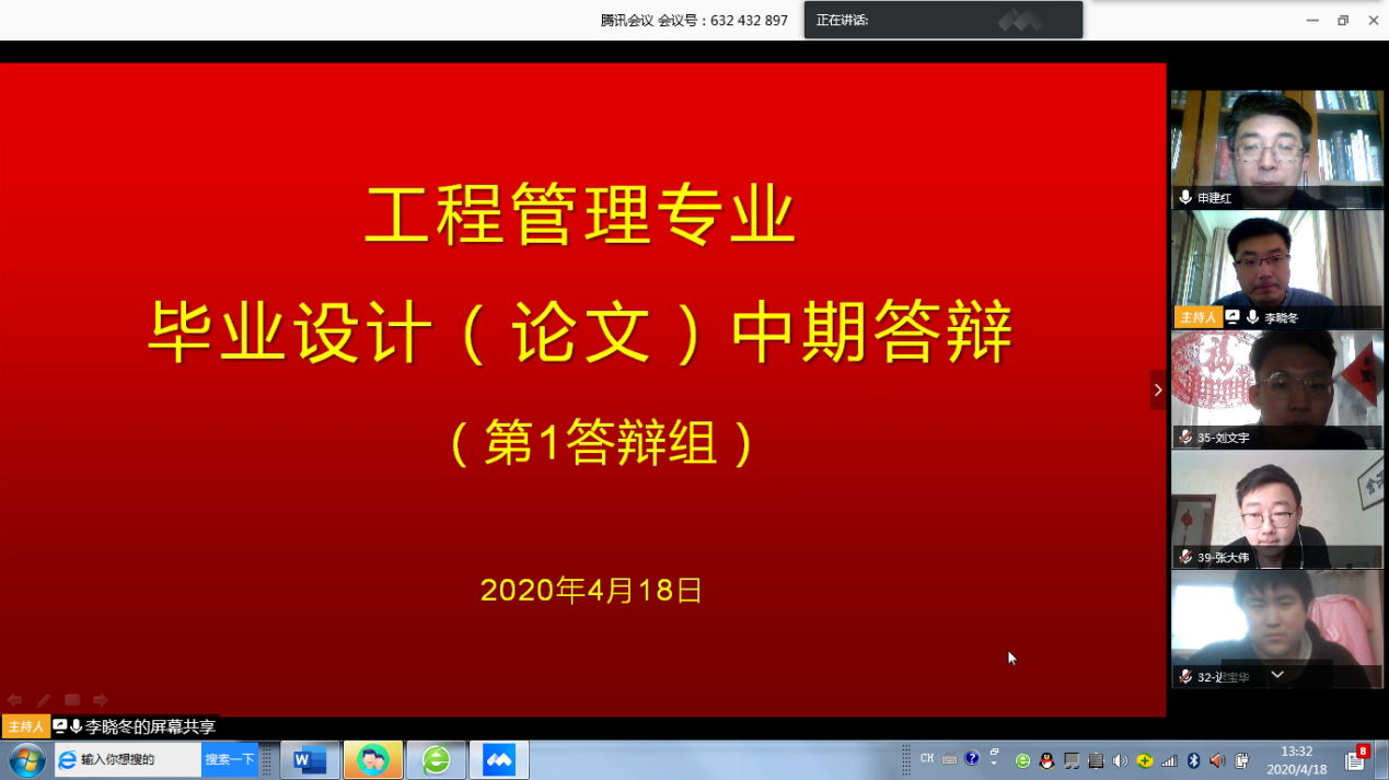 新冠病毒疫情期间“停课不停学,云端促毕设”。4月18日,3044永利集团官网工程管理教研室举行了毕业设计(论文)中期在线答辩。