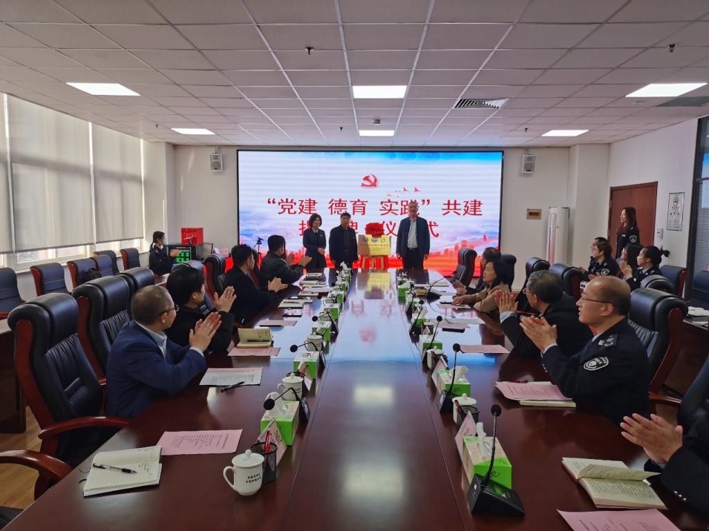 活动伊始,田向东代表青岛市生态环境局西海岸新区分局对参加本次党建德育实践基地揭牌仪式的同志们表示热烈的欢迎和衷心感谢。共建单位一同参观了分局党史学习教育展区、省级环保科普基地、“文化长廊”、党员活动室、廉政教育展厅、生态环境监测中心及大数据监控中心等展馆,观看了《党旗红映环保人,生态美在西海岸》党建工作宣传片。随后,三方在西海岸新区党史学习教育第八巡回指导组的见证下,举行“党建德育实践”共建基地揭牌仪式,仪式过后召开党建德育实践基地共建座谈会,就推进新时期党的建设、创新德育内容方法、探索实践加流平台等进行深入座谈交流,明确今后的努力方向。三方在共建主题、共建目标、共建内容、沟通机制四个方面对三方共建活动的开展做出了初步规划,一致认为可在人才、资源、创新、实习等方面开展深度合作,推动校政企党建德育实践更深层次融合,全面实现互惠共赢。