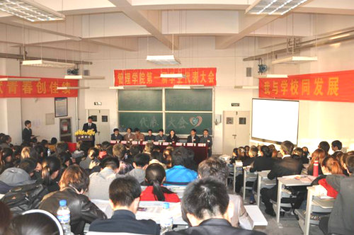 管理学院党总支副书记申维东致开幕词,校团委副书记焦红良发表讲话,管理学院学生会主席张威代表学生会向大会作报告,管理学院学生会副主席孙旭东宣布新一届学生委员会成员名单。