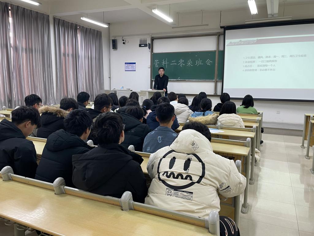 会议中,各班班主任应学院要求从疫情防控、安全教育、学风建设等方面展开班会内容。疫情防控方面,老师们强调要认真落实疫情防控细节要求,做到一日三检,严格落实请假手续,做到非必要不外出,保持宿舍整洁,做到每日通风、消杀,认真填写消杀记录表,学院会按时督查各宿舍的落实情况,同学们更需要提高疫情防控意识,真正将疫情防控入脑入心,落实到日常行动中。安全教育方面,老师们首先强调宿舍安全相关事项,要求宿舍内严禁使用大功率电器及明火设备,严禁吸烟,大家齐心协力,共同维护公寓安全稳定;加强网络素养教育,网络不是法外之地,做到不信谣、不传谣,时刻防范电信诈骗。学风建设方面,期末临近,各班主任提醒同学们认真备考,及早开始复习,用优异的成绩回报自己一年的努力,同时,各班主任要求同学们严肃考风考纪,诚信考试,严禁作弊,遵守考场规则,彰显优良品格。毕业班班主任鼓励考研同子坚持到最后,努力冲刺,取得优异成绩;希望就业同学积极就业,调整就业期望,尽早签约。其它年级班主任鼓励同学们及早确立考研目标,早做准备、早做计划。