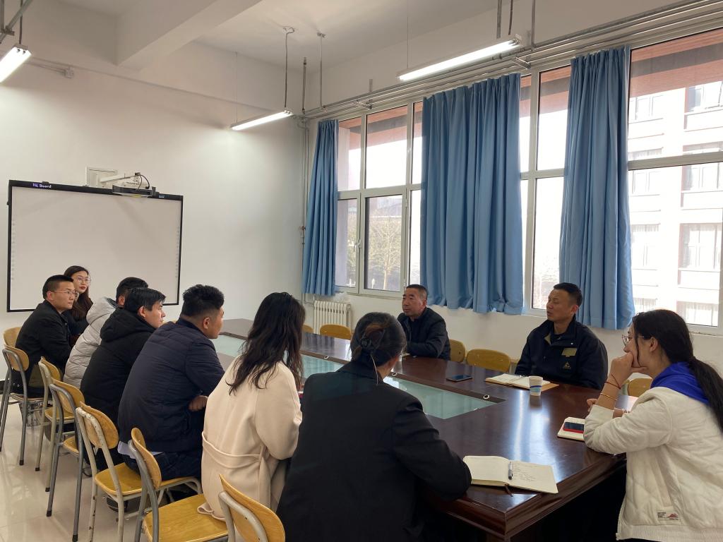 3月14日下午,体育教学部主任王龙、代滨老师来学院进行走访调研。学院党委副书记王中帅、团委书记宋晓峰和全体辅导员参加了体育座谈会。