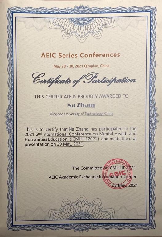 2021年5月28日--5月30日,第二届ICMHHE2021(The 2021 2nd International Conference on Mental Health and Humanities Education)国际学术会议于中国青岛召开。我院19级建筑与土木工程专业硕士研究生张娜应邀出席该会议,并在大会上做题为“Research on the teaching reform of engineering ethics course based on the concept of ideological and political courses”的全英文口头报告,向与会学者嘉宾汇报和阐述陈为公教授所承担的课程思政教学改革项目的研究成果与进展,并就相关问题进行了深入交流。该研究将课程思政融入工程伦理教育教学当中,梳理和凝练工程伦理知识体系,以社会主义核心价值观重塑工程伦理教育的“价值理性”,促进工程伦理教育的中国化和本土化,通过对工程伦理课程的教学体系进行改革与创新,突出“实践理性”,进而实现工科研究生工程伦理教育 “意识-规范-能力”三位一体的培养目标,为更好地培养具有工程伦理素养的复合型工程技术人才提供理论依据。
