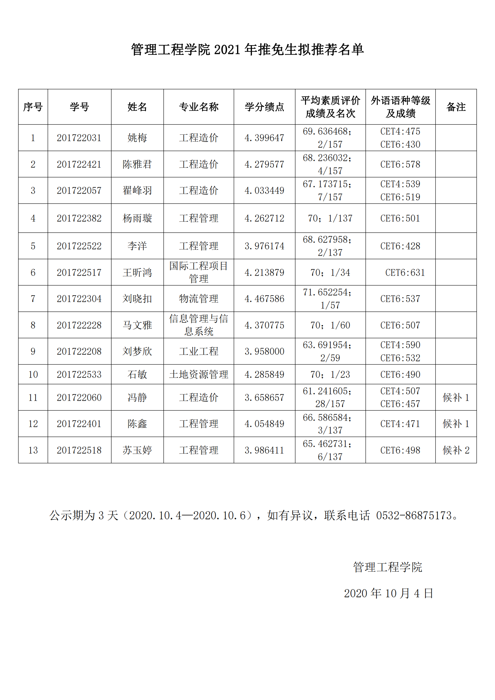 3044永利集团官网2021年推免生拟推荐名单
