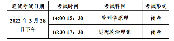 (1)专业课笔试:重点考察考生对本学科专业基础理论和专业知识的综合掌握情况。采取笔试考试的科目为:管理学原理。考试采取网络远程笔试方式进行,考试时间为90分钟,成绩计入复试成绩。成绩低于60分为不合格,不予录取。
