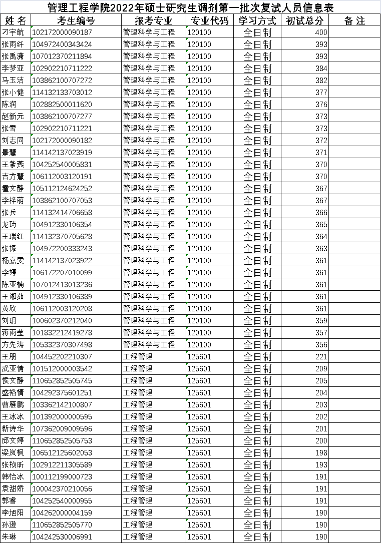 3044永利集团官网2022年硕士研究生调剂第一批次复试人员信息表