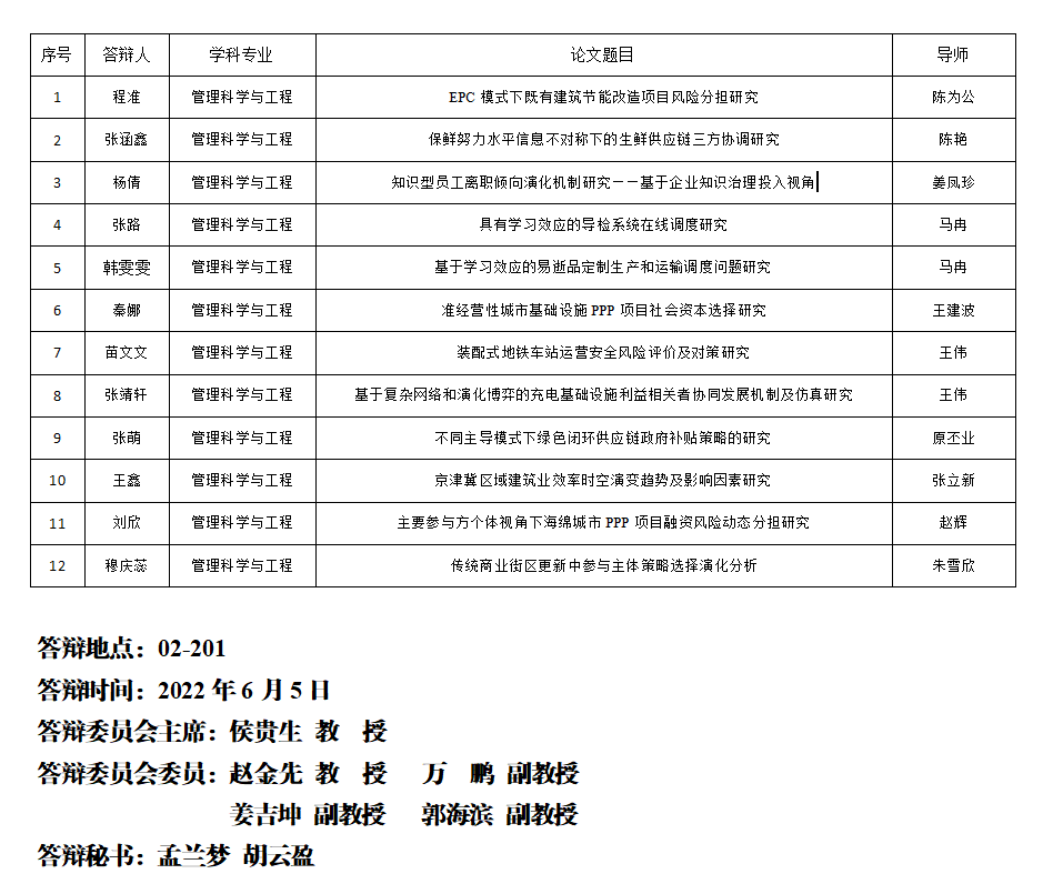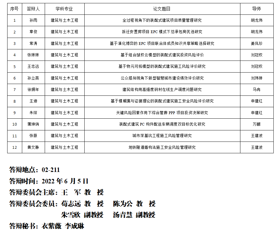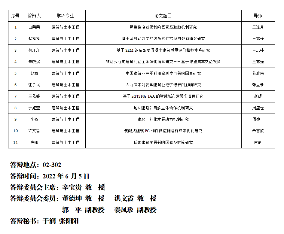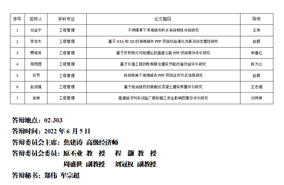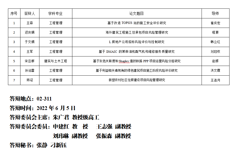 青岛理工大学硕士研究生学位论文答辩公告