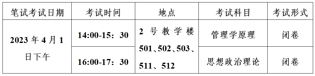 (1)专业课笔试:重点考察考生对本学科专业基础理论和专业知识的综合掌握情况。采取笔试考试的科目为:管理学原理。考试时间为90分钟,成绩计入复试成绩。成绩低于60分为不合格,不予录取。