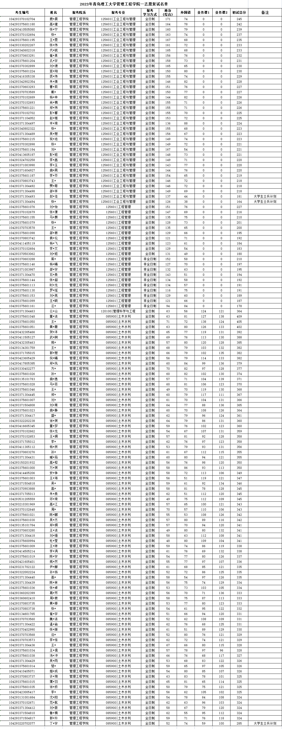 2023年青岛理工大学3044永利集团官网一志愿复试名单公示