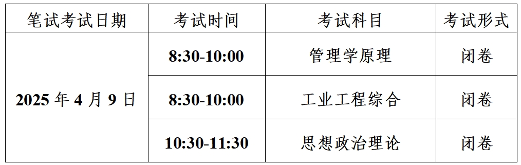 考生需在7:50前进入腾讯会议考场,进行身份核验和环境检测。10:00-10:30期间为《管理学原理》、《工业工程综合》交卷时间,需连续参加两门科目考试的考生,《管理学原理》、《工业工程综合》交卷后不得离开考场,两门课考试中间不再进行环境检查和身份核验。所有考试结束后,需待监考员检查试卷提交无误后,方可离开考场。
