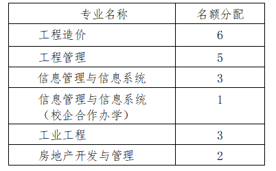 表1 各专业推免生名额分配