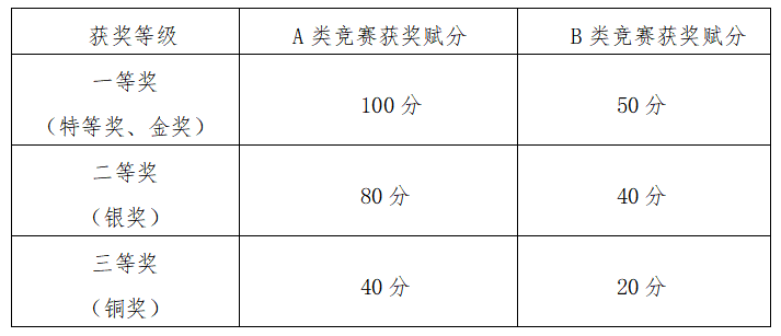 注:中国“互联网+”大学生创新创业大赛、“挑战杯”全国大学生课外学术科技作品竞赛、“挑战杯”全国大学生创业计划竞赛(创青春全国大学生创业计划竞赛)三大赛事确定为科研竞赛A类赛事,除三大赛事之外的中国高教学会公布赛事为B类赛事(包括ACM-ICPC国际大学生程序设计竞赛全国总决赛)。科研竞赛的纳入范围及分类,依据学生参赛当年中国高教学会公布的赛事为准。
