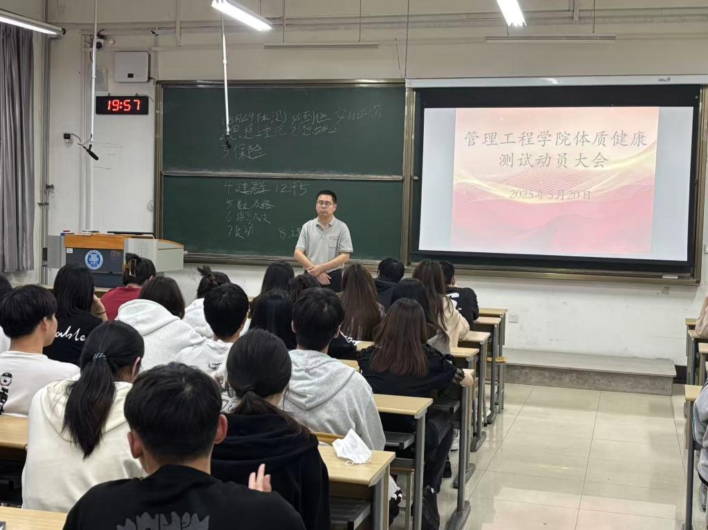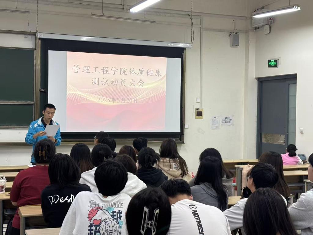 柳志广在会议中指出:体质健康是青年成长成才的基石,本次抽测既是对学院体育育人成效的检验,更是同学们展现管理工程学子精神风貌的契机。他提出三点要求:第一,要深刻领会“健康第一”理念,自觉增强体育锻炼提高身体素质和健康水平,将体测作为自我健康管理的起点;第二,要科学训练,遵循培训要求,将集中性训练与日常锻炼有机结合,掌握爆发力、耐力、柔韧协同提升方法,将本次参测作为健康管理的重要组成部分;第三要彰显风格:以"使命在肩、奋斗有我"的精神状态,自觉强化集体荣誉感和责任担当,以青春之我创造青春之业绩。