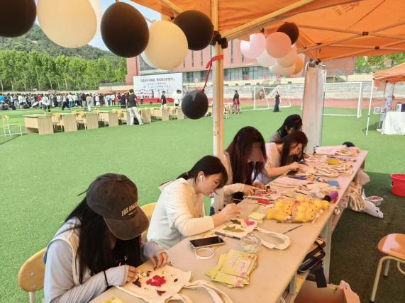 为提升学生心理健康意识,学院在“525心理嘉年华”特设“悦动青春,心向暖阳”创意区。活动前同学们精心收集樱花、海棠、连翘等植物,以明矾水浸泡处理,既保留自然原色,又能确保拓印效果参与同学们亲手挑选叶片与花瓣,在白色帆布袋上精心构图,用槌子反复敲击浸润过的植物,汁液与纹路逐渐渗透布料,晕染出深浅交织的春日图景,在老师的指导下,将春日花卉、叶片拓印于纯白帆布包,以传统技艺融合现代创意,传递绿色生活理念,展现文明新风尚。