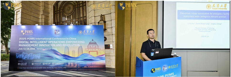 2025年POMS国际会议(中国)于7月11日至14日在海南儋州海花岛国际会议中心隆重举行。我院工业工程系青年教师李玉晨博士应邀作题为《Data-driven robust optimization for emergency facility deployment under ambiguous demand position》的学术报告。此次会议由天津大学牵头主办,浙江大学、中国科学技术大学与西安交通大学联合承办。大会以“数智化运营赋能管理创新与变革”为主题,汇聚全球智慧,聚焦数字化与智能技术如何重塑运营模式、优化供应链等热点问题,深入探讨管理创新对全球产业格局的影响。